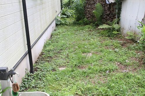 雨も降ったし気温も高いし、草は伸びるしで困ったものです。 刈る前はあっても刈った後の写真がありません。 家の裏。 家の裏側の堺。 刈った後にババの畑に。 育っています。 芝刈り機登場です。 通路確保。 虎刈りですが、刈りました。 ロープで際を刈って…