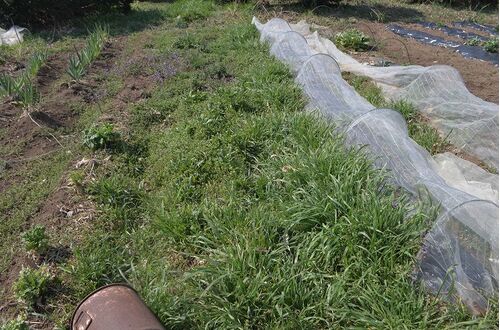 3月になって暖かな日が続いて、順調に育っています。 草原となった畑。 草の根がはってしまって取り外しがとても大変だった防虫ネットを外しました。 ミニテーラーで草退治と耕耘スタート。 すぐにあきらめて管理機を持ってきました。 管理機で2回ほど耕耘し…