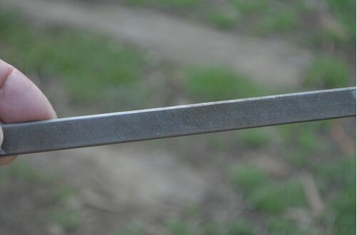 平ヤスリでゴシゴシしました。 結構ゴシゴシして薄くしました。 薄くしたのはソーチェーンでなくて、玄関の合鍵です。 合鍵が必要で、マスターからホームセンターで作ってもらいましたが、鍵穴にすら入りませんでした。 平ヤスリでバリを取ってもダメ。 先端…