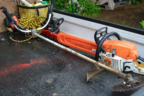 長野のお山も草刈りをしました。 一月前に刈ったのですが、やはり伸びています。 上に行く道も茂っていました。 キョウリツのJAと金星君、020とこがるを持って行きました。 結局、チェーンソーは使わず、草刈りだけですみました。 斜面がやはり急で大変でし…